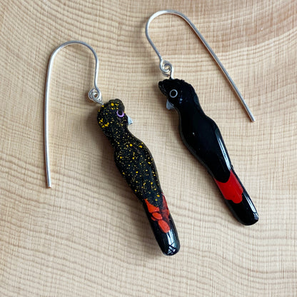 Part of a collection inspired by native Australian birds, these mini-sized Red-tailed Black Cockatoo earrings are wearable art for your ears!